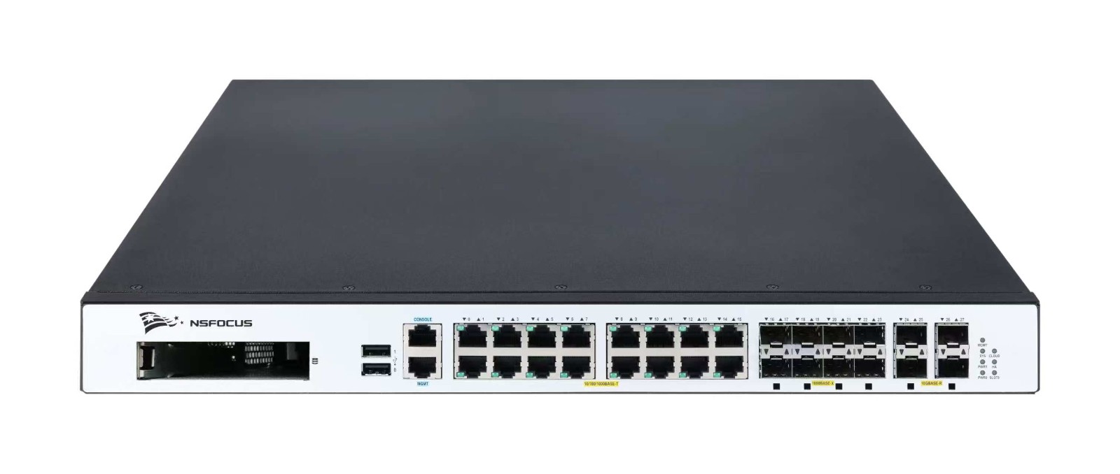 含1*MGMT(管理口)+16*千兆电接口+8*千兆光接口+4*万兆光接口,1*接口卡扩展槽位,双电源,4内置风扇。480GB 固态硬盘。